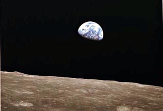 Apollo astronauts orbiting the moon view the rising of the beautiful planet earth from a quarter of a million miles away, Christmas Eve, 1968. [Photo, courtesy National Aeronautics and Space Administration (NASA)] |
