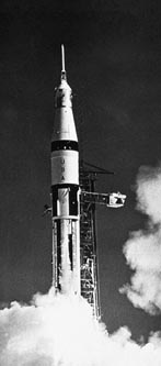 Launch of the first manned Apollo spacecraft on October 11, 1968. Chamberlin, Maynard, and other Canadian engineers were deeply involved in the Apollo spacecraft programs. [Photo, courtesy NASA via William Mellberg] |